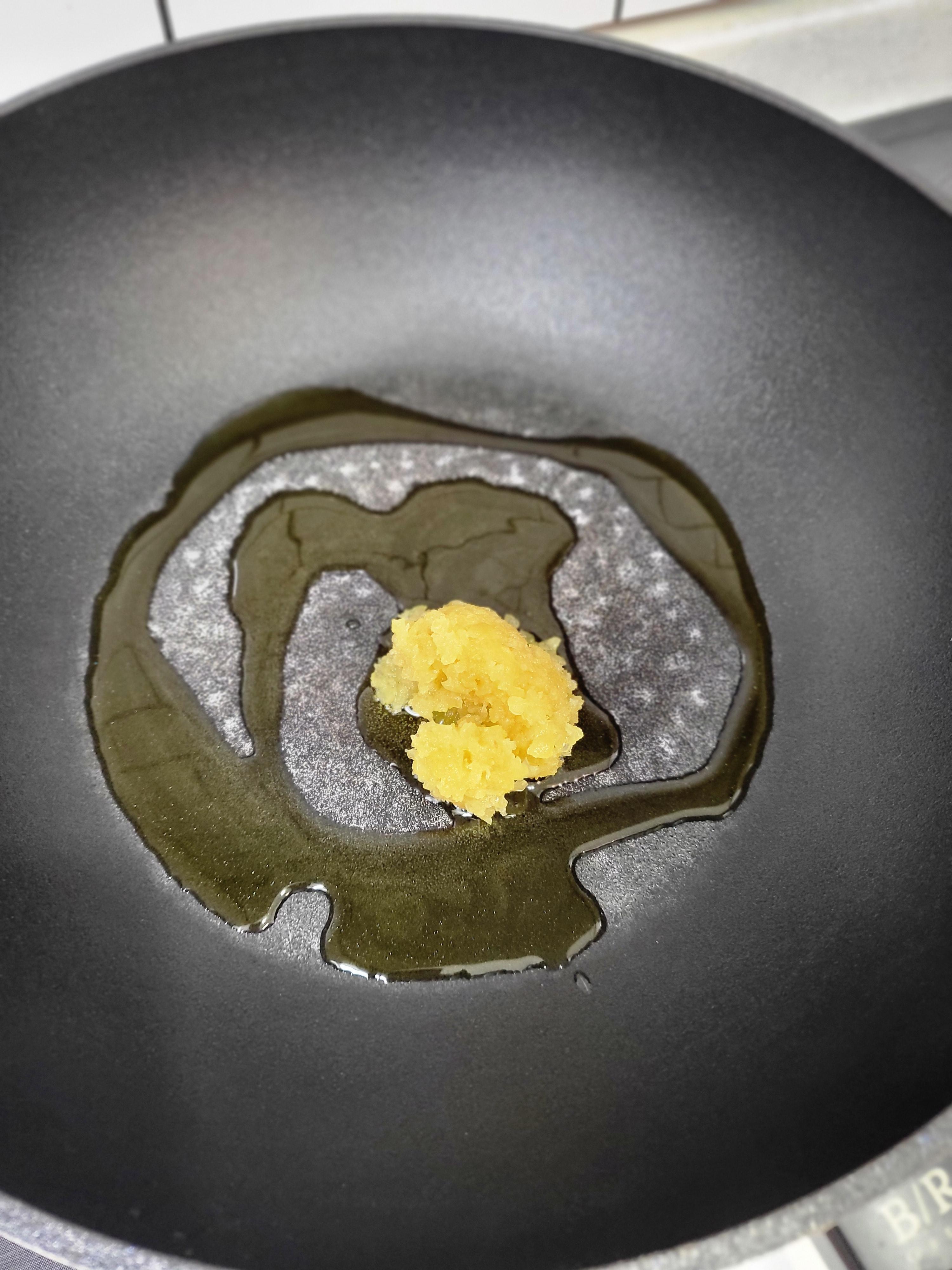 2. 기름 두른 팬 위로 다진 마늘 볶아주세요.